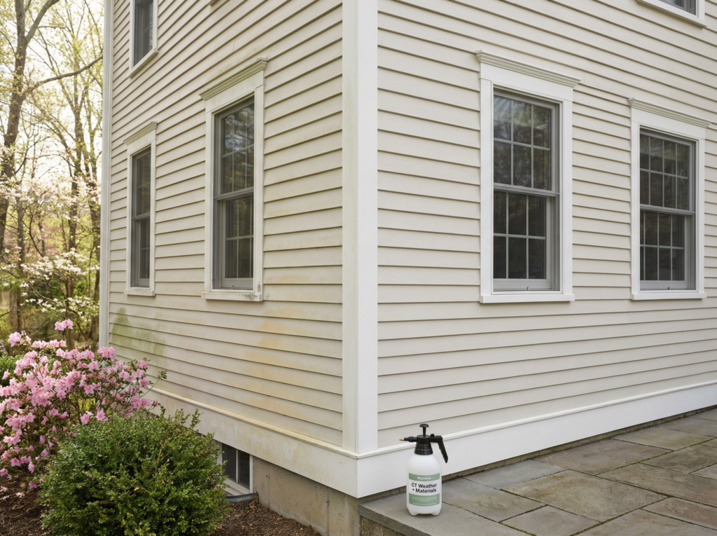 Connecticut homes see road splash, pollen, coastal salt, shade moisture and winter grime. We choose detergents and cleaning methods that target those specific issues without being harsher than your siding, wood or masonry can handle.